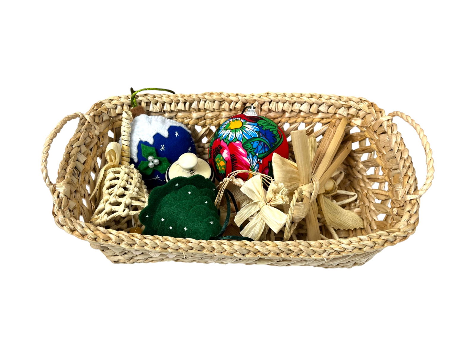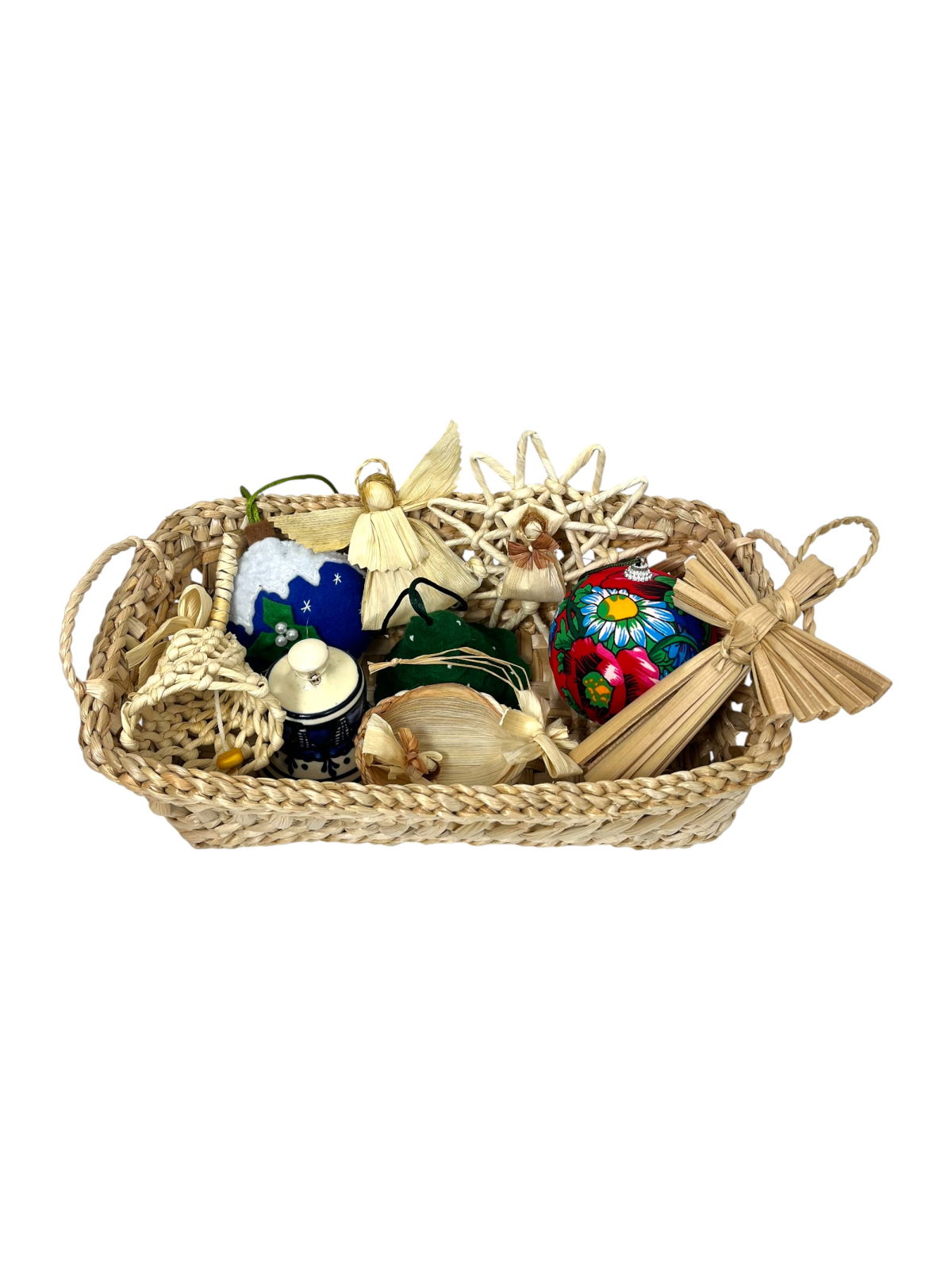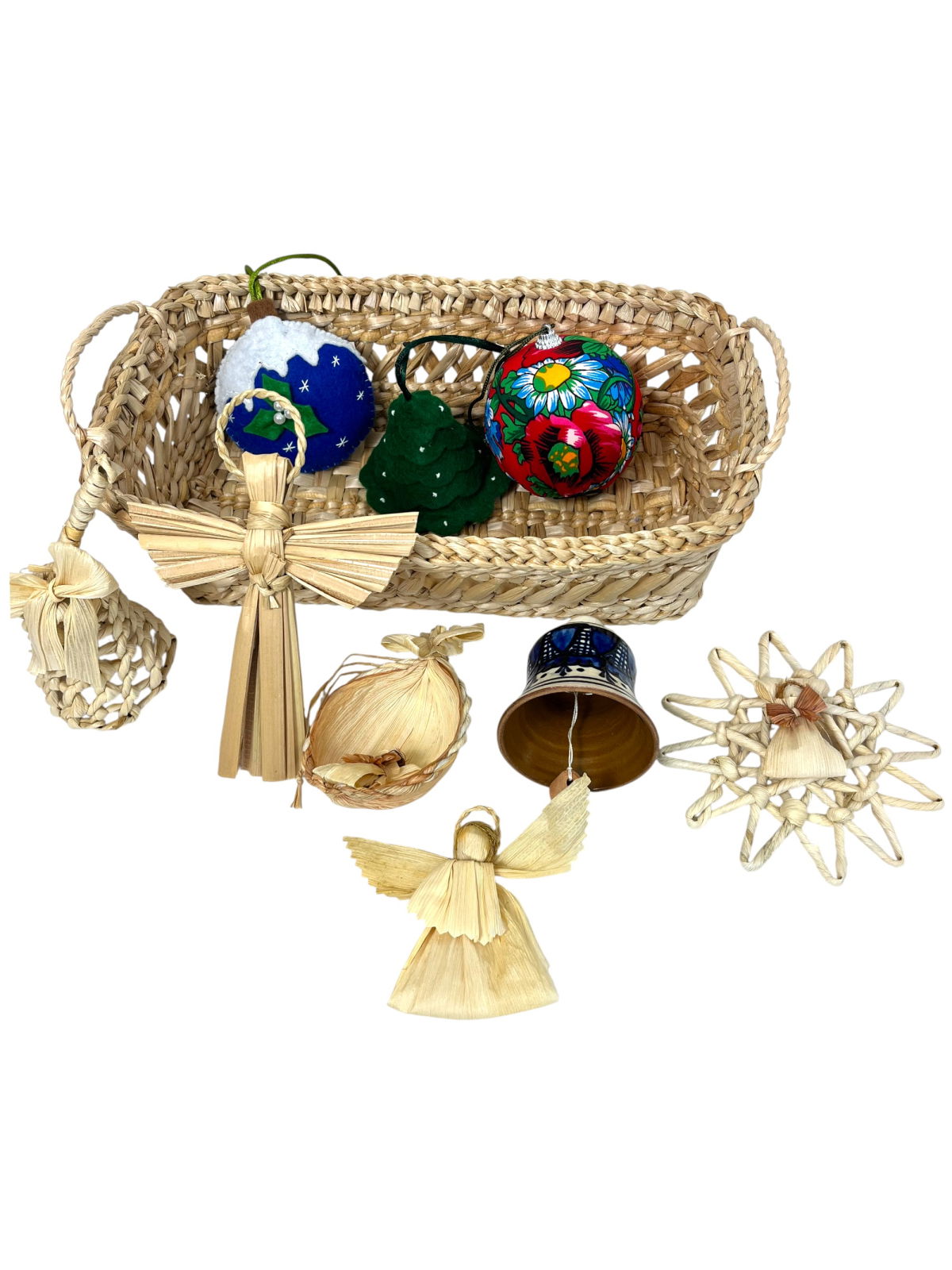 Transformă magia Crăciunului într-un dar plin de emoție și tradiție! Acest coș cadou îmbină frumusețea materialelor naturale cu creativitatea meșterilor artizani, oferind decorațiuni unice pentru un brad cu adevărat special.