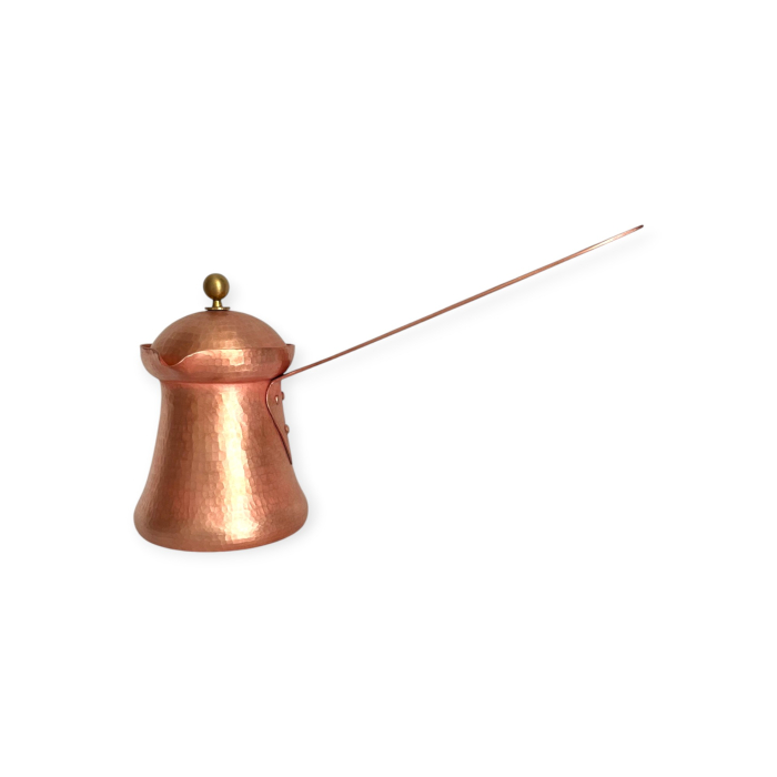 Fiecare piesă este lucrată atent, din cupru masiv de calitate superioară, pentru o distribuție uniformă a căldurii și o extracție optimă a aromei. Forma special concepută ajută la formarea și păstrarea spumei dense, specifică cafelei turcești preparate corect.