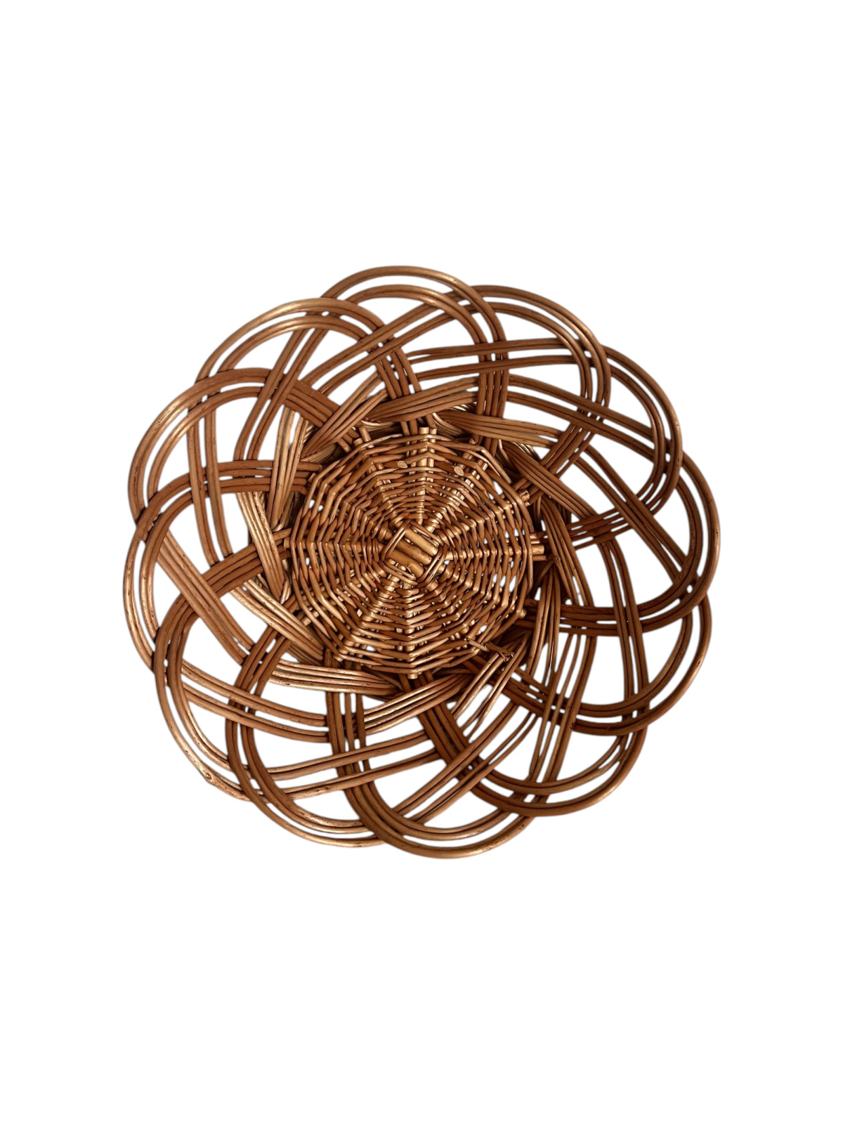 Forma rotundă oferă un cadru perfect pentru a aranja și afișa ouăle proaspete de la ferma locală sau cele pictate cu grijă pentru sărbătorile pascale. Fiecare spirală delicată de rachită este îngrijit lucrată, adăugând un aer de finețe și rafinament.