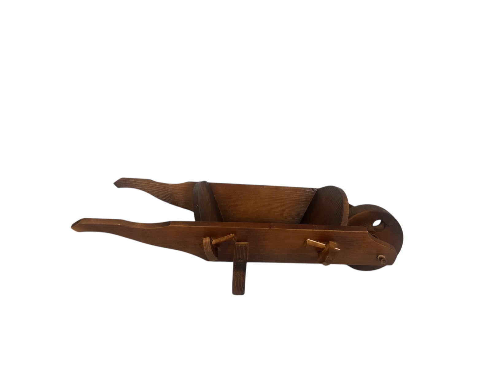 Adaugă un farmec tradițional spațiului tău cu această roabă din lemn, realizată manual cu măiestrie și atenție la detalii. Perfectă pentru a completa un decor rustic, această piesă versatilă poate fi folosită atât ca element decorativ, cât și ca suport pentru flori și plante.